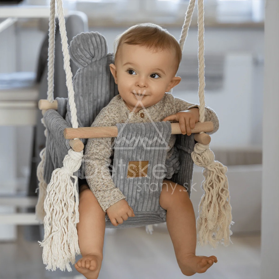 Detská hojdačka Bear Swing s pásom - Corduroy Estetic GRAY