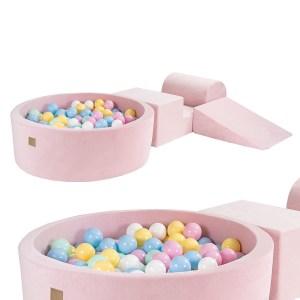 Celá zostava Vás očarí HARD - hrubým dezénom, ale stále veľmi jemným povrchom a veľkými možnosťami využitia. Sada štyroch modulov + loptičky sa dá použiť na zábavu, ale aj na cvičenie, na vytvorenie prekážkových dráh alebo priestorových štruktúr. Bazén je naplnený farebnými loptičkami, v závislosti od veku si dieťa pri hre s loptičkami precvičuje motoriku, posilňuje úchop, učí sa farby a rozvíja koordináciu dizajnu a pohybu. Guličky majú perfektne guľatý tvar, takže padnú do detskej ruky.