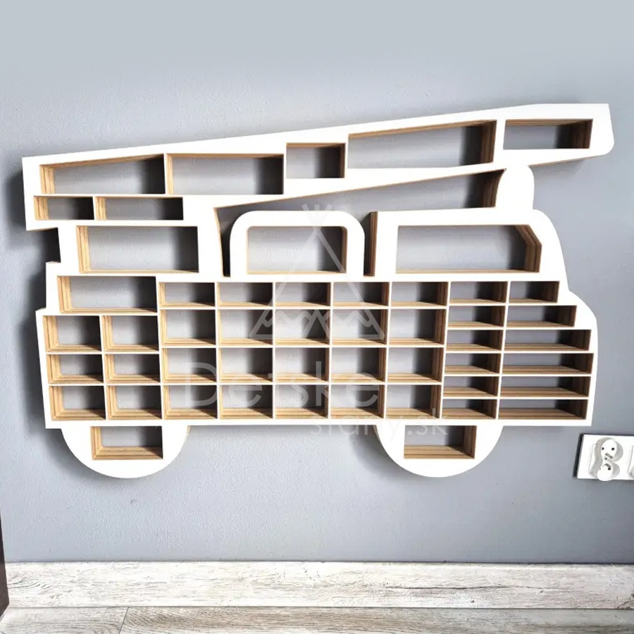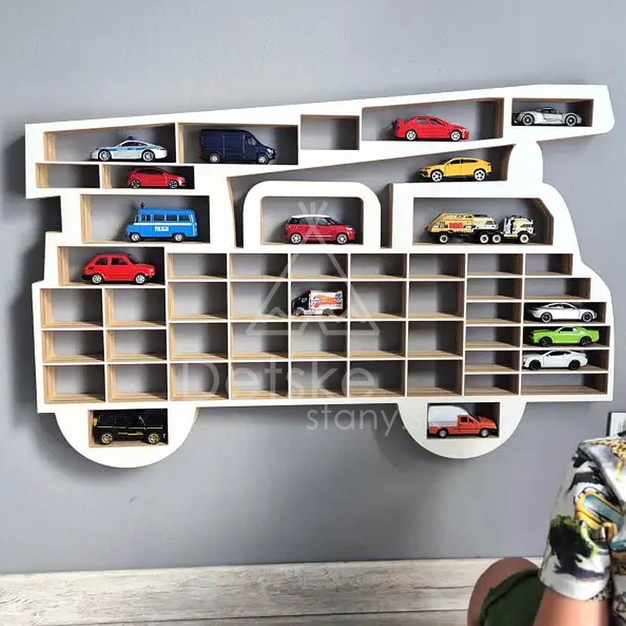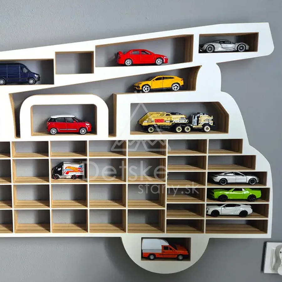 Táto polička výrazne pomôže udržiavať poriadok. Skvelá voľba pre malých aj veľkých zberateľov. XXL organizér v tvare auta POŽIARNEJ STRÁŽE má 74 miest (otvorov) pre umiestnenie autíčok.