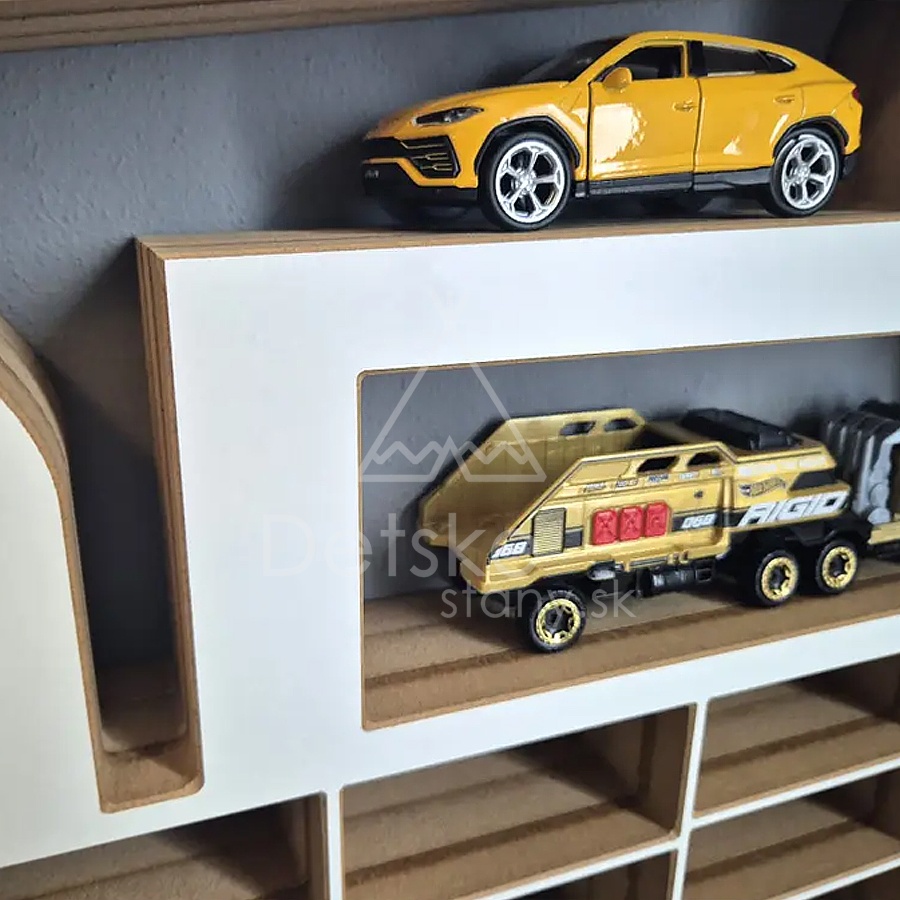 Ideálny na umiestnenie angličákov - najbežnejšie Hot wheels autíčok + v tomto prípade aj na autíčka väčších rozmerov