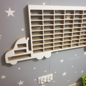 Táto polička výrazne pomôže udržiavať poriadok. Skvelá voľba pre malých aj veľkých zberateľov. Organizér v tvare kamióna / TIR má 75 miest (otvorov) pre umiestnenie malých autíčok.