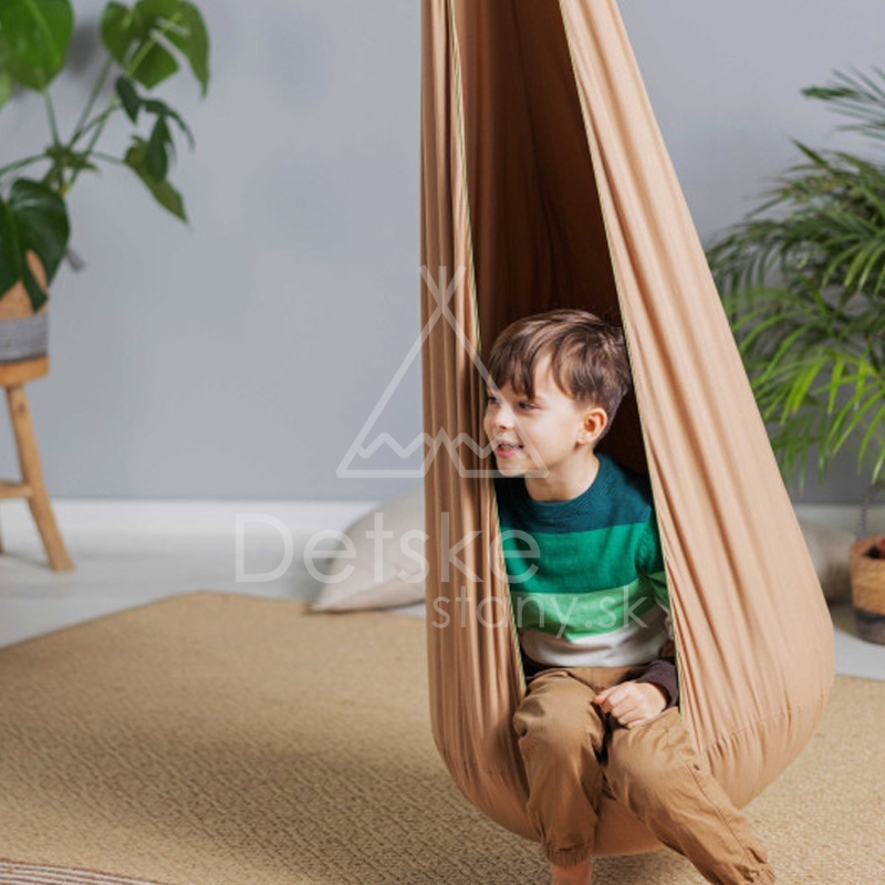 Do závesnej detskej látkovej hojdačky sa vaša ratolesť s potešením schúli ako do mamkinej náruče. Obľúbenou hojdačkou zabavíte deti na dlhú dobu. Okrem hojdania sa v nej môžu ľahko schovať alebo len tak odpočívať. Hojdačku môžete doladiť teepee stanom alebo baldachýnom.