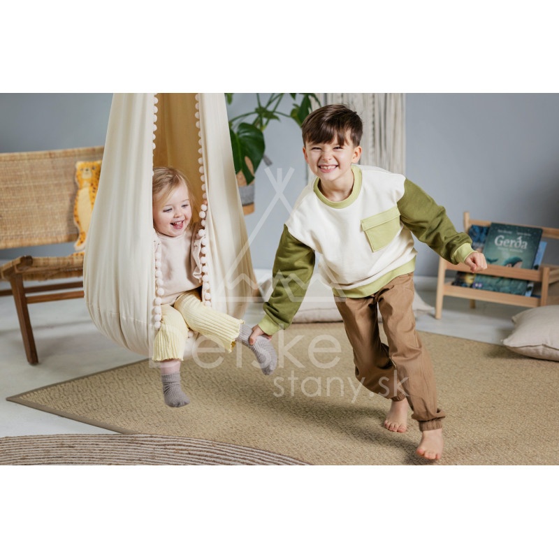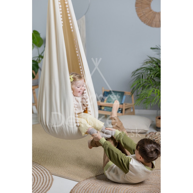 Do závesnej detskej látkovej hojdačky sa vaša ratolesť s potešením schúli ako do mamkinej náruče. Obľúbenou hojdačkou zabavíte deti na dlhú dobu. Okrem hojdania sa v nej môžu ľahko schovať alebo len tak odpočívať. Hojdačku môžete doladiť teepee stanom alebo baldachýnom.
